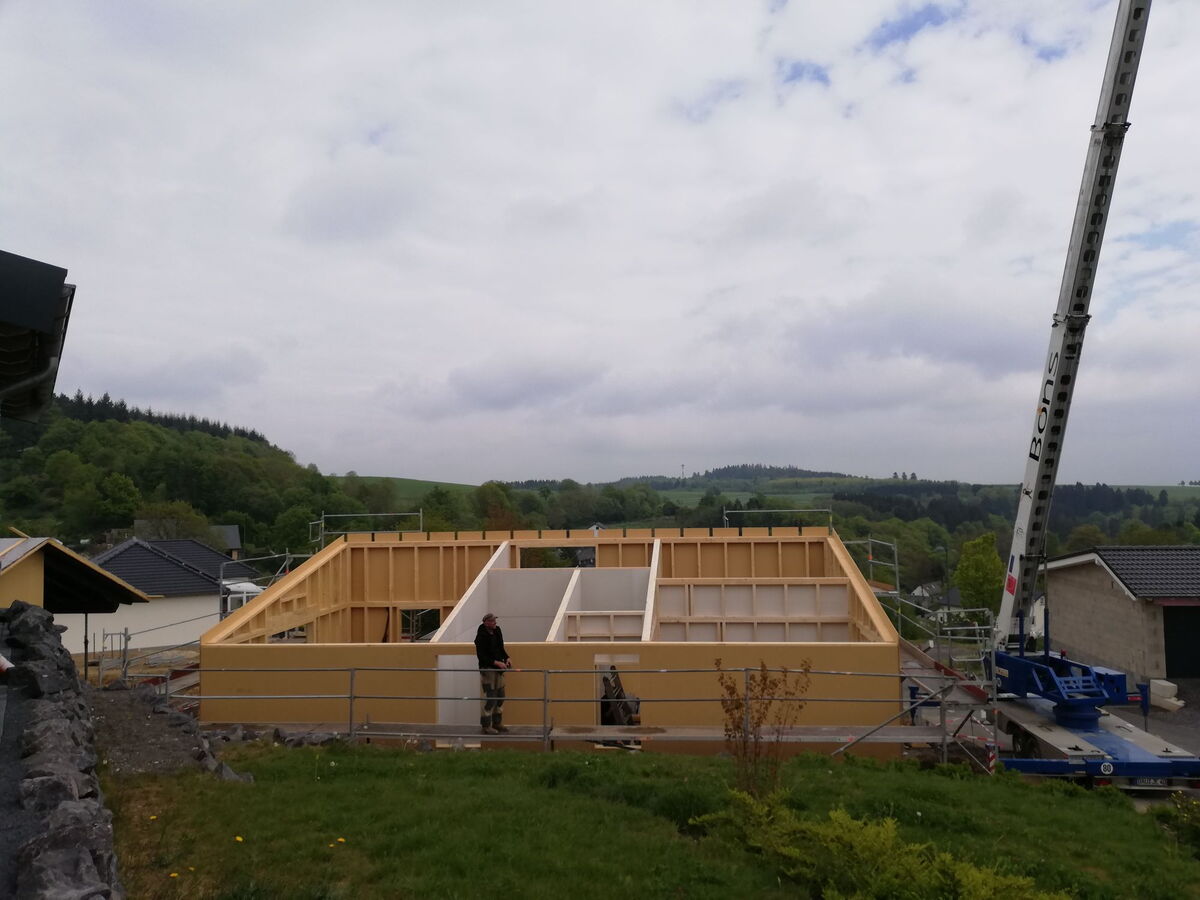 Im Mai konnten wir bei gutem Wetter weiter arbeiten. Nach und nach wurden weiter fleißig die letzten Wände gestellt und die Rohrarbeiten abgeschlossen. Auch der Dachstuhl ist jetzt fertig und bereits regendicht, sodass die restlichen Dacharbeiten noch in diesem Monat abgeschlossen werden können. Auch die Dämmarbeiten werden in den nächsten 14 Tagen ausgeführt, sodass Anfang Juni mit den Installationsarbeiten begonnen werden kann. Wir sind froh, dass trotz Corona alles wie geplant verläuft.